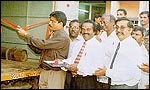 staff & dealers at "cutting the ribbon" ceremony to signal the commencement